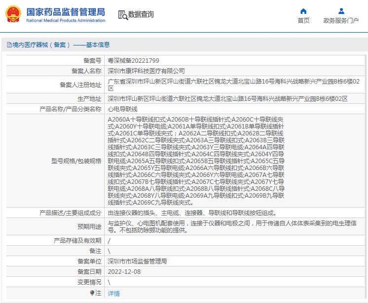 與監(jiān)護(hù)儀、心電圖機(jī)配套使用,連接于儀器和電極之間,用于傳遞自人體體表采集到的電生理信號(hào)。不包括防除顫功能的提供。
