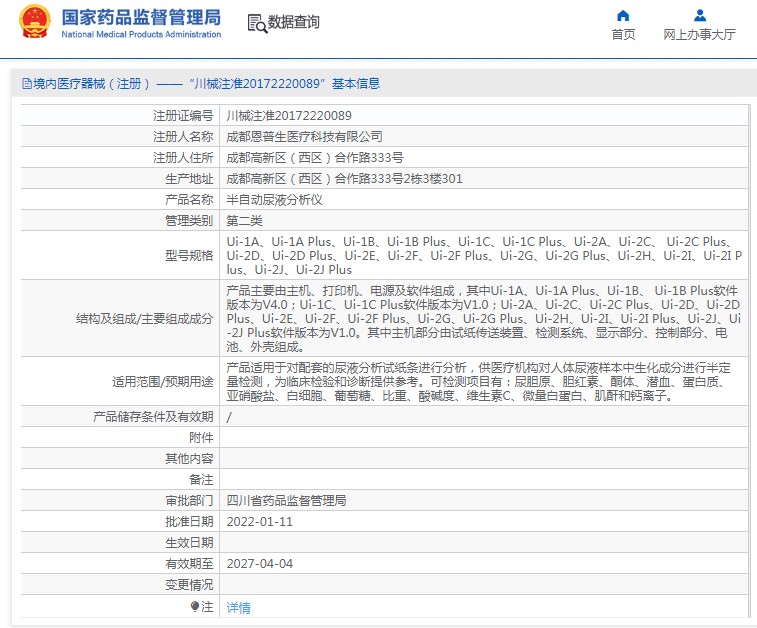 產(chǎn)品主要由主機、打印機、電源及軟件組成,其中Ui-1A、Ui-1A Plus、Ui-1B、Ui-1B Plus軟件版本為V4.0 ;Ui-1C、Ui-1C Plus軟件版本為V1.0 ;Ui-20A、Ui-20C、Ui-20C Plus、Ui-20D、Ui-20D Plus軟件版本為V1.0。主機部分由試紙傳送裝置、檢測系統(tǒng)、顯示部分、控制部分、電池、外殼組成。