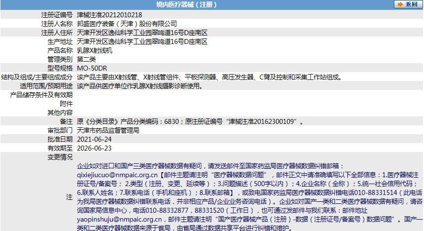 該產(chǎn)品供醫(yī)療單位作乳腺X射線攝影診斷使用。