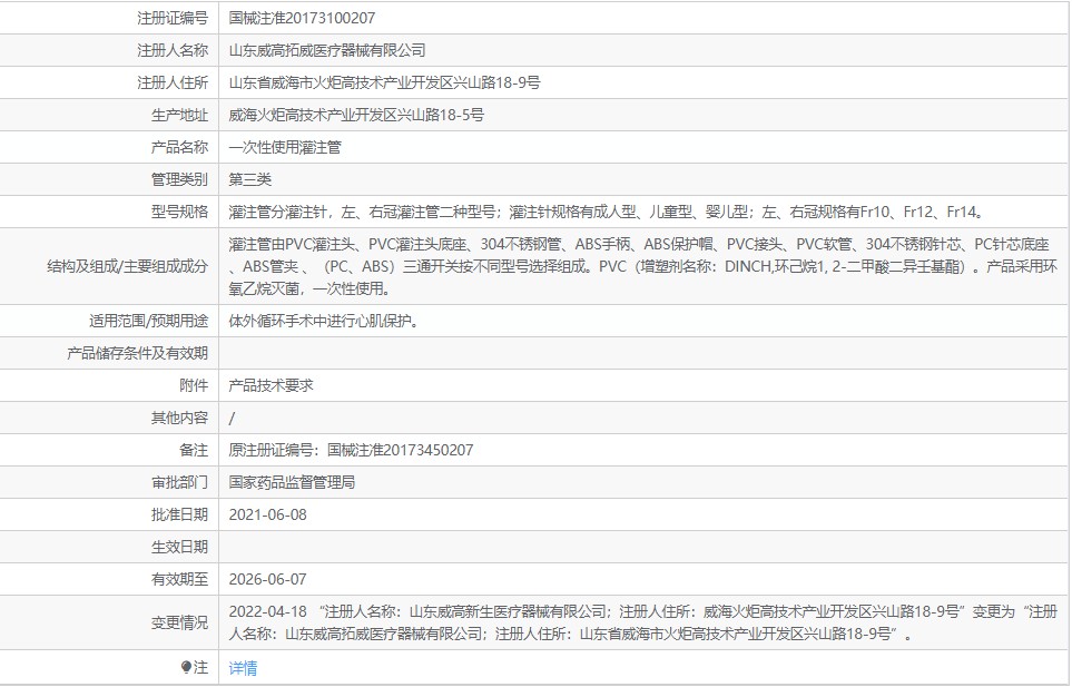 灌注管由PVC灌注頭、PVC灌注頭底座、304不銹鋼管、ABS手柄、ABS保護(hù)帽、PVC接頭、PVC軟管、304不銹鋼針芯、PC針芯底座、ABS管夾、(PC、ABS)三通開(kāi)關(guān)按不同型號(hào)選擇組成。PVC(增塑劑名稱:DINCH,環(huán)己烷1, 2- 二甲酸二異壬基酯)。產(chǎn)品采用環(huán)氧乙烷滅菌,***次性使用。