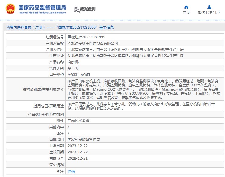 該產(chǎn)品用于成人、兒科患者(含小兒、嬰幼兒)的吸入麻醉和呼吸管理,在醫(yī)療機(jī)構(gòu)由培訓(xùn)合格、獲得授權(quán)的麻醉醫(yī)務(wù)人員操作。