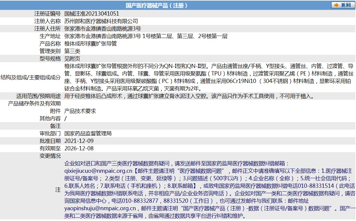 用于經(jīng)皮椎體后凸成形術(shù),通過球囊擴(kuò)張建立骨水泥注入空腔。該產(chǎn)品只作為手術(shù)工具使用,不可用于植入。椎體成形球囊擴(kuò)張導(dǎo)管根據(jù)外形的不同分為QN-I型和QN-II型。產(chǎn)品由通管絲座/手柄、Y型接頭、通管絲、內(nèi)管、過渡管、導(dǎo)管、顯影環(huán)、球囊組成。 上海聚慕醫(yī)療器械公司提供醫(yī)療器械采購(gòu),維修保養(yǎng),安裝培訓(xùn),出租租賃等,來電咨:18901912755 郵箱 :postmaster@jmmedical.cn