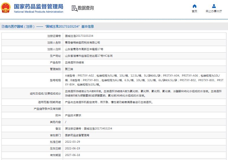 產(chǎn)品與血液透析機(jī)配合使用,用于急、慢性腎功能衰竭患者進(jìn)行血液透析。
