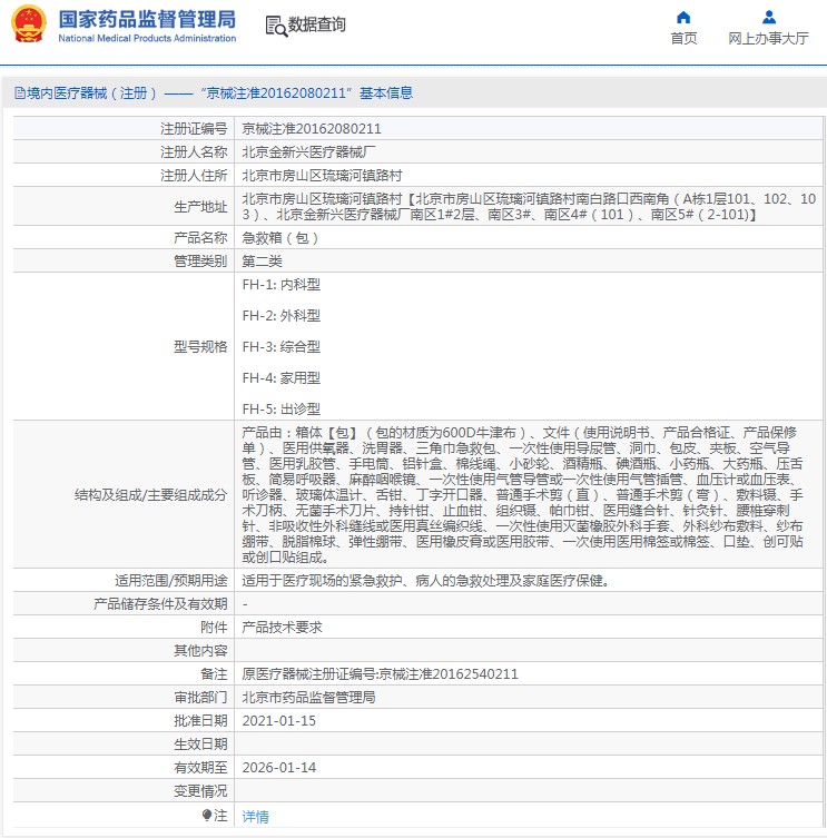 產(chǎn)品由:箱體【包】(包的材質(zhì)為600D牛津布)、文件(使用說明書、產(chǎn)品合格證、產(chǎn)品保修單)、醫(yī)用供氧器、洗胃器、三角巾急救包、***次性使用導(dǎo)尿管、洞巾、包皮、夾板、空氣導(dǎo)管、醫(yī)用乳膠管、手電筒、鋁針盒、棉線繩、小砂輪、酒精瓶、碘酒瓶、小藥瓶、大藥瓶、壓舌板、簡易呼吸器、麻醉咽喉鏡、***次性使用氣管導(dǎo)管或***次性使用氣管插管、血壓計或血壓表、聽診器、玻璃體溫計、舌鉗、丁字開口器、普通手術(shù)剪(直)、普通手術(shù)剪(彎)、敷料鑷、手術(shù)刀柄、無菌手術(shù)刀片、持針鉗、止血鉗、組織鑷、帕巾鉗、醫(yī)用縫合針、針灸針、腰椎穿刺針、非吸收性外科縫線或醫(yī)用真絲編織線、***次性使用滅菌橡膠外科手套、外科紗布敷料、紗布繃帶、脫脂棉球、彈性繃帶、醫(yī)用橡皮膏或醫(yī)用膠帶、***次使用醫(yī)用棉簽或棉簽、口墊、創(chuàng)可貼或創(chuàng)口貼組成。