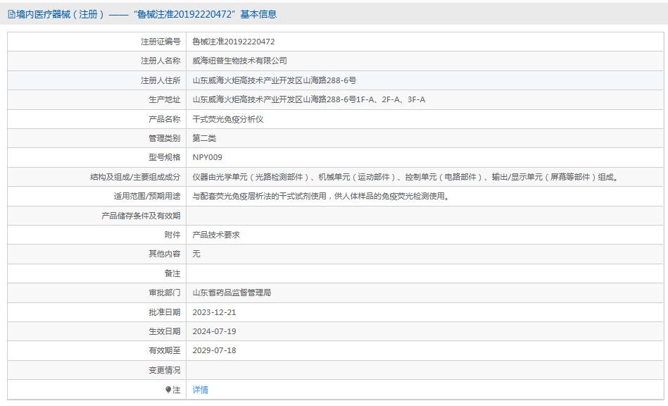 與配套熒光免疫層析法的干式試劑使用,供人體樣品的免疫熒光檢測使用。