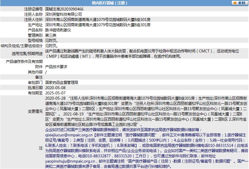 該產(chǎn)品通過(guò)刺激線(xiàn)圈產(chǎn)生的磁場(chǎng)刺激人體大腦皮層,配合肌電圖儀用于檢測(cè)中樞運(yùn)動(dòng)傳導(dǎo)時(shí)間(CMCT)、運(yùn)動(dòng)誘發(fā)電位(MEP)和運(yùn)動(dòng)閾值(MT),用于改善腦卒中患者手部功能障礙,在醫(yī)療機(jī)構(gòu)使用。