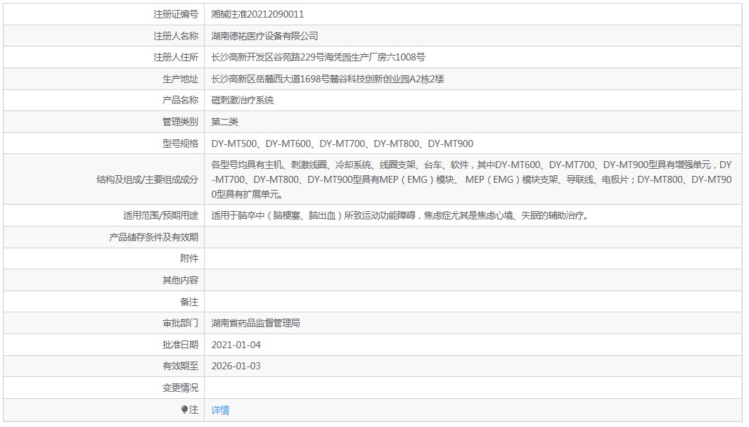 各型號均具有主機、刺激線圈、冷卻系統(tǒng)、線圈支架、臺車、軟件,其中DY-MT600、DY-MT700、DY-MT900型具有增強單元,DY-MT700、DY-MT800、DY-MT900型具有MEP(EMG)模塊、 MEP(EMG)模塊支架、導聯(lián)線、電極片;DY-MT800、DY-MT900型具有擴展單元。