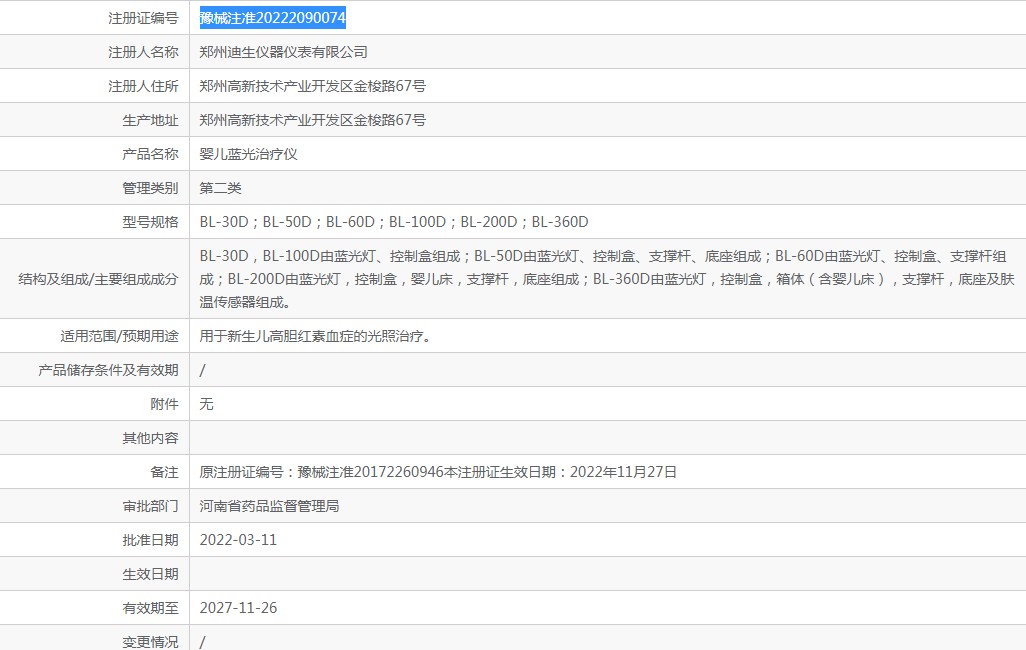 適用范圍:用于新生兒高膽紅素血癥的光照治療。