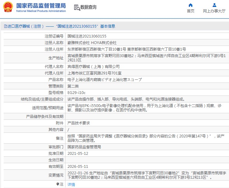 該產(chǎn)品與EPK-i5500c電子影像處理機(jī)配合使用,用于為上消化道(不包含十二指腸)觀察、診斷、攝影以及治療提供影像,在醫(yī)療機(jī)構(gòu)中使用。