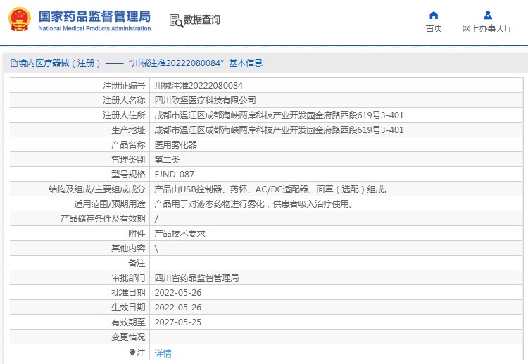 產(chǎn)品用于對液態(tài)藥物進行霧化,供患者吸入治療使用。