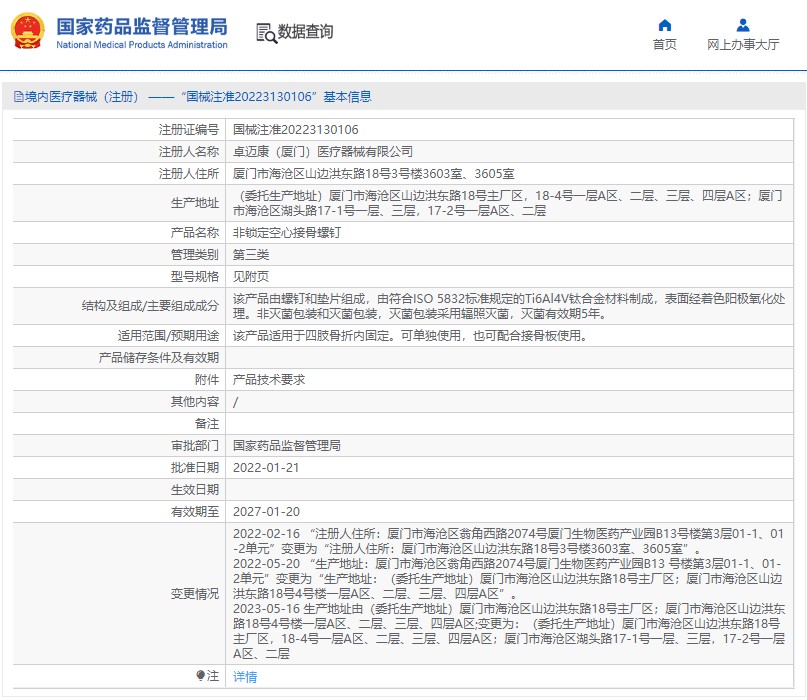 該產(chǎn)品由螺釘和墊片組成,由符合ISO 5832標(biāo)準(zhǔn)規(guī)定的Ti6Al4V鈦合金材料制成,表面經(jīng)著色陽極氧化處理。非滅菌包裝和滅菌包裝,滅菌包裝采用輻照滅菌,滅菌有效期5年。