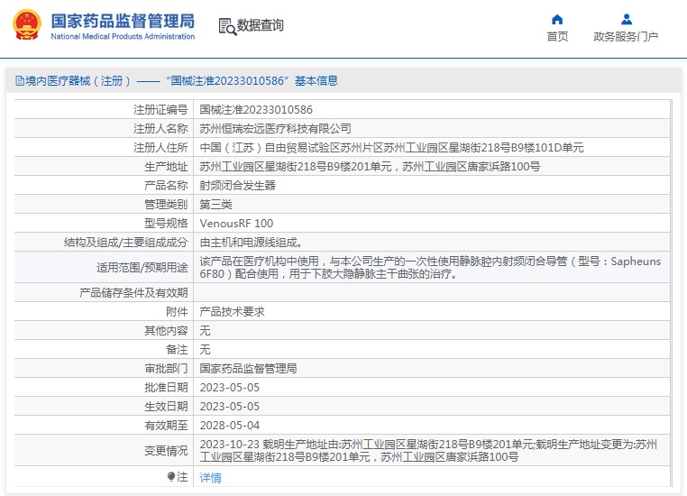 該產(chǎn)品在醫(yī)療機構中使用,與本公司生產(chǎn)的***次性使用靜脈腔內射頻閉合導管(型號:Sapheuns 6F80)配合使用,用于下肢大隱靜脈主干曲張的治療。
