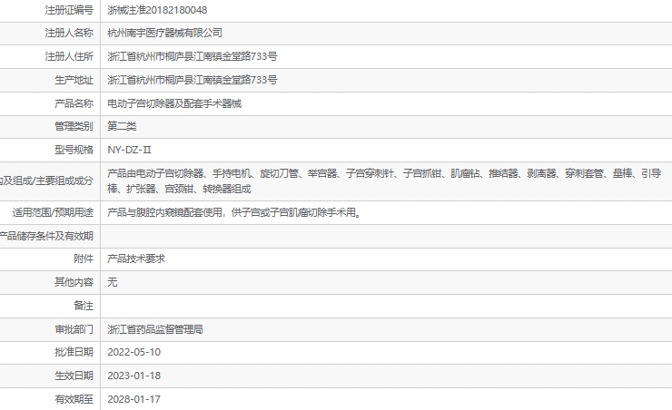 溫馨提示:1.南宇電動子宮切除器及配套手術(shù)器械NY-DZ-Ⅱ可能含有禁忌內(nèi)容或者注意事項,具體詳見說明書;2.購買南宇電動子宮切除器及配套手術(shù)器械NY-DZ-Ⅱ后應(yīng)仔細(xì)閱讀南宇電動子宮切除器及配套手術(shù)器械NY-DZ-Ⅱ說明書或者在醫(yī)務(wù)人員的指導(dǎo)下購買和使用;3.以上南宇電動子宮切除器及配套手術(shù)器械NY-DZ-Ⅱ內(nèi)容均來自于生產(chǎn)廠***、代理商網(wǎng)站不作為宣傳購買依據(jù)如與南宇電動子宮切除器及配套手術(shù)器械NY-DZ-Ⅱ說明書有沖突的,均以南宇電動子宮切除器及配套手術(shù)器械NY-DZ-Ⅱ說明書為準(zhǔn);