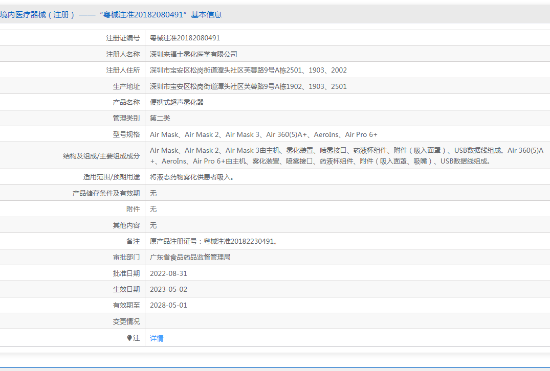 Air Mask、Air Mask 2、Air Mask 3由主機(jī)、霧化裝置、噴霧接口、藥液杯組件、附件(吸入面罩)、USB數(shù)據(jù)線組成。Air 360(5)A+、AeroIns、Air Pro 6+由主機(jī)、霧化裝置、噴霧接口、藥液杯組件、附件(吸入面罩、吸嘴)、USB數(shù)據(jù)線組成。