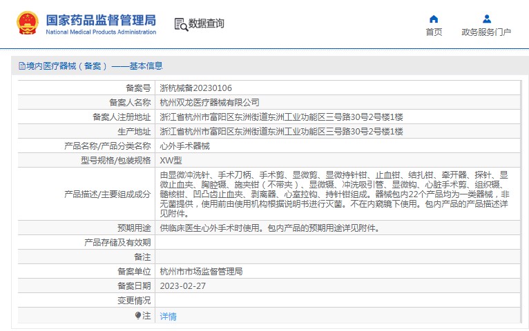由顯微沖洗針、手術刀柄、手術剪、顯微剪、顯微持針鉗、止血鉗、結扎鉗、牽開器、探針、顯微止血夾、胸腔鑷、施夾鉗(不帶夾)、顯微鑷、沖洗吸引管、顯微鉤、心臟手術剪、組織鑷、髓核鉗、凹凸齒止血夾、剝離器、心室拉鉤、持針鉗組成。器械包內22個產品均為***類器械,非無菌提供,使用前由使用機構根據說明書進行滅菌。不在內窺鏡下使用。包內產品的產品描述詳見附件。