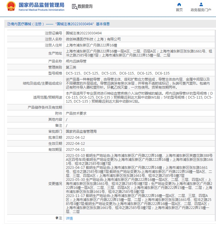 本產(chǎn)品適用于專業(yè)醫(yī)師進(jìn)行神經(jīng)血管疾病介入治療時(shí)器械的輸送。顱內(nèi)遠(yuǎn)端導(dǎo)管6F的型號(hào)規(guī)格(DC6-115, DC6-125, DC6-135)預(yù)期***遠(yuǎn)到達(dá)大腦中動(dòng)脈M1段;5F的型號(hào)規(guī)格(DC5-115, DC5-125, DC5-135)預(yù)期***遠(yuǎn)到達(dá)大腦中動(dòng)脈M2段。