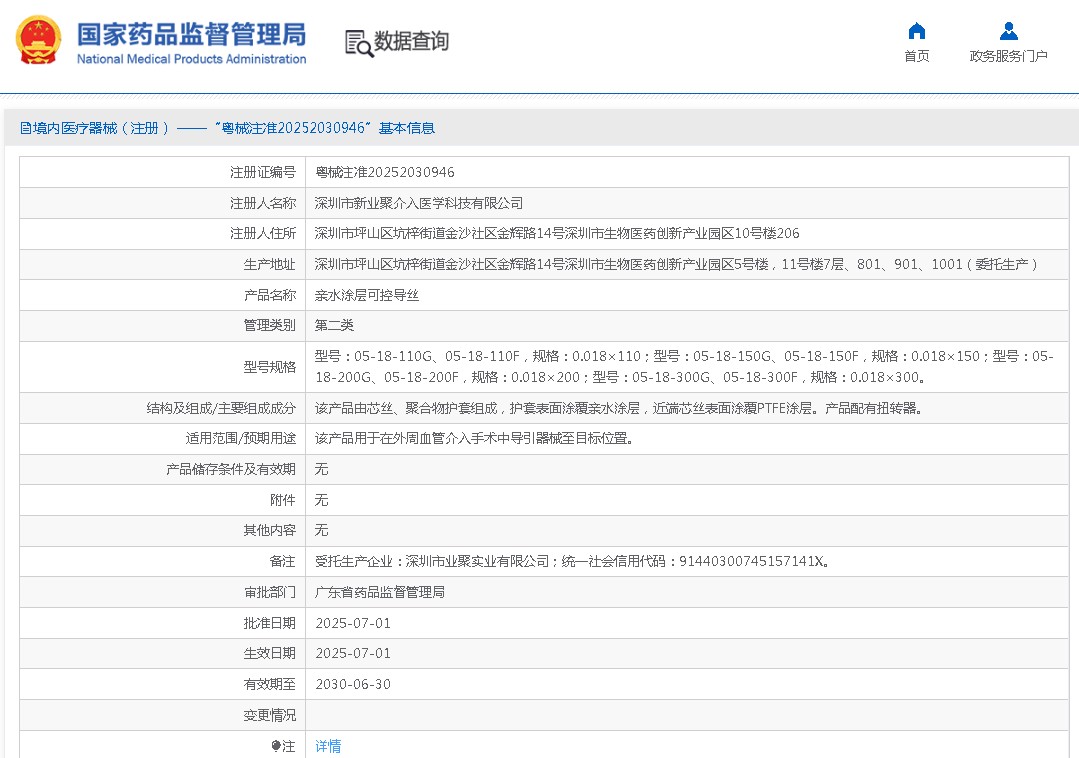 可控性:導絲直徑精確控制在0.025mm-0.032mm區(qū)間,配合可拆卸連接結構與延伸段設計(超出導絲管20cm以上),便于術中快速更換及***操控。