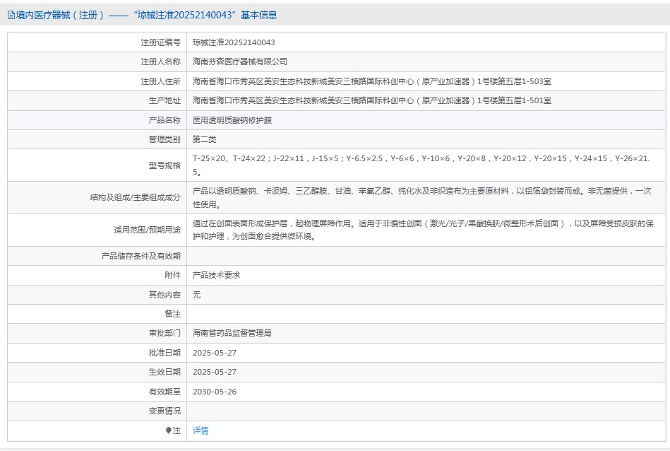 根據(jù)搜索結(jié)果,T-25×20規(guī)格的醫(yī)用透明質(zhì)酸鈉修護(hù)膜相關(guān)信息如下: