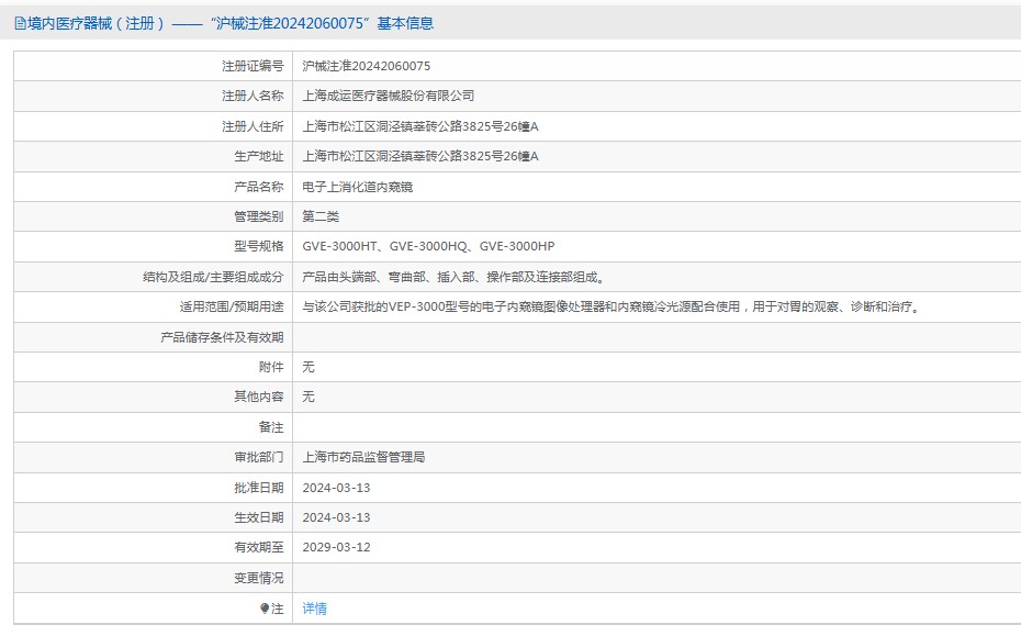 適用范圍/預期用途與該公司獲批的VEP-3000型號的電子內(nèi)窺鏡圖像處理器和內(nèi)窺鏡冷光源配合使用,用于對胃的觀察、診斷和治療。