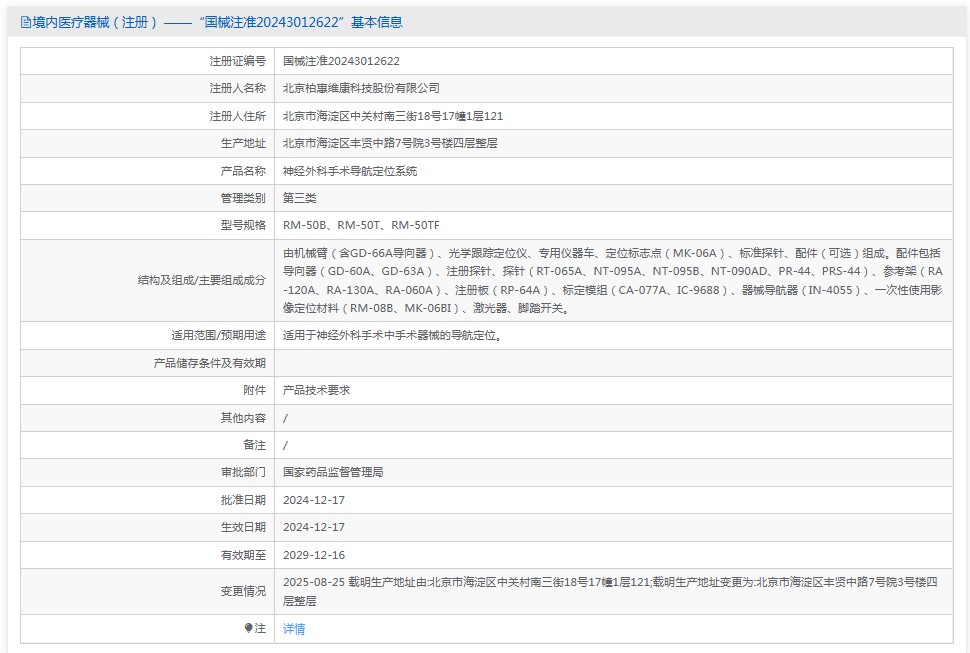 適用范圍/預(yù)期用途適用于神經(jīng)外科手術(shù)中手術(shù)器械的導(dǎo)航定位。