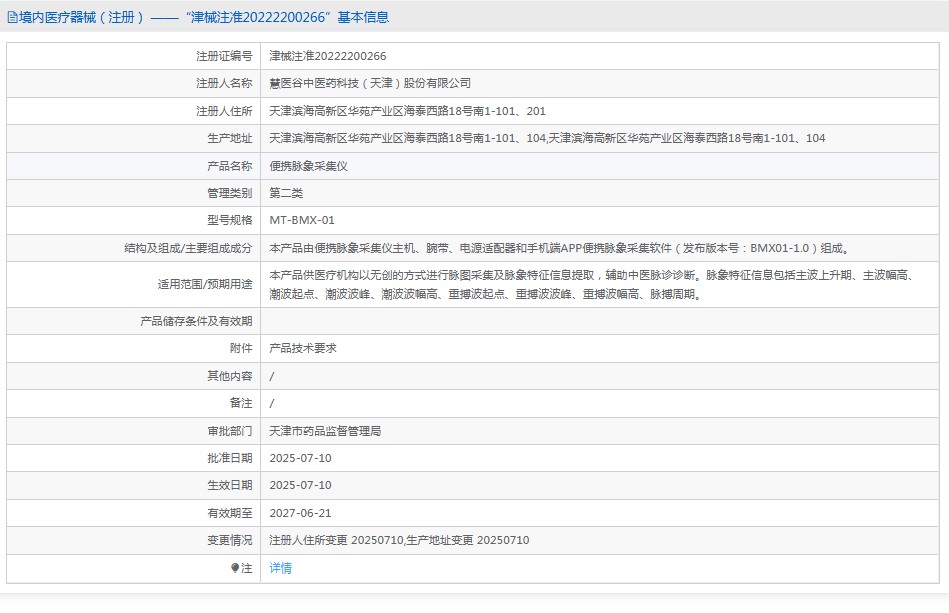 適用范圍/預(yù)期用途本產(chǎn)品供醫(yī)療機構(gòu)以無創(chuàng)的方式進行脈圖采集及脈象特征信息提取,輔助中醫(yī)脈診診斷。脈象特征信息包括主波上升期、主波幅高、潮波起點、潮波波峰、潮波波幅高、重搏波起點、重搏波波峰、重搏波幅高、脈搏周期。
