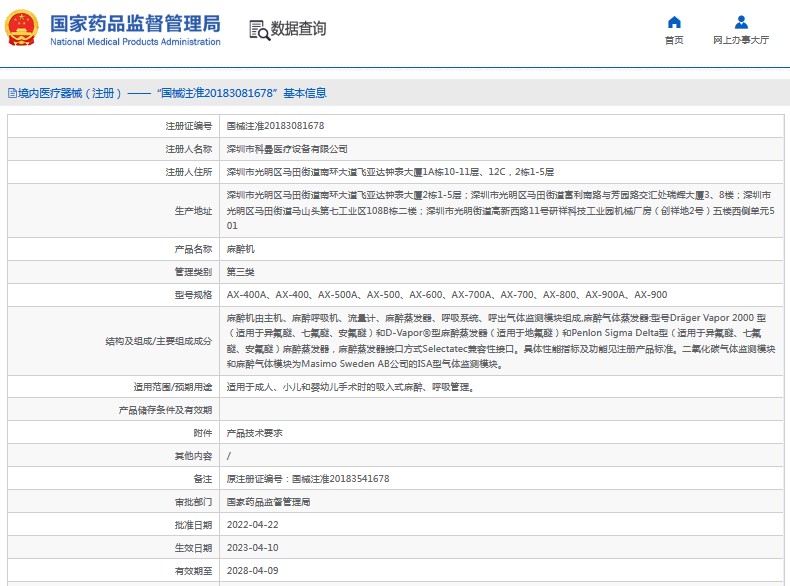 麻醉機(jī)由主機(jī)、麻醉呼吸機(jī)、流量計(jì)、麻醉蒸發(fā)器、呼吸系統(tǒng)、呼出氣體監(jiān)測模塊組成,麻醉氣體蒸發(fā)器:型號Dr?ger Vapor 2000 型(適用于異氟醚、七氟醚、安氟醚)和D-Vapor?型麻醉蒸發(fā)器(適用于地氟醚)和Penlon Sigma Delta型(適用于異氟醚、七氟醚、安氟醚)麻醉蒸發(fā)器,麻醉蒸發(fā)器接口方式Selectatec兼容性接口。具體性能指標(biāo)及功能見注冊產(chǎn)品標(biāo)準(zhǔn)。二氧化碳?xì)怏w監(jiān)測模塊和麻醉氣體模塊為Masimo Sweden AB公司的ISA型氣體監(jiān)測模塊。